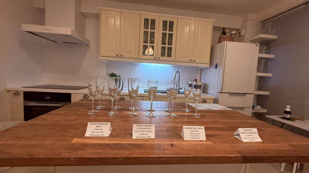 意外と知らない「シャンパンとスパークリングの、産地以外の具体的な違い」を。実際にテイスティングしながら皆で意見交換をし、「高くても好みじゃない」「安いけど、私はこれが好き」といった、値段やブランドに囚われず味で決める体験へ。